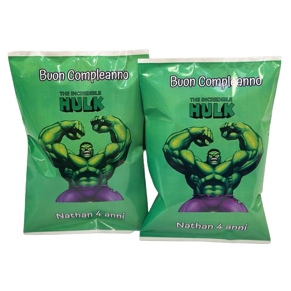 💚 10 Patatine Hulk 25 o 50 gr personalizzate