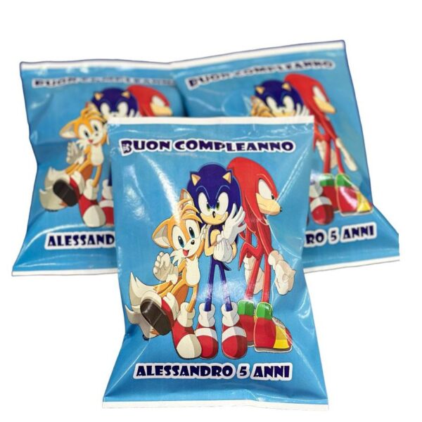 🎉✨Rendi la festa di compleanno unica e indimenticabile con le nostre patatine personalizzate a tema Sonic ! Ogni sacchetto è decorato con un’adorabile grafica perfetto per aggiungere un tocco di allegria e originalità al tuo evento.