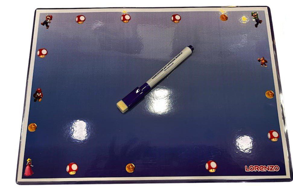 MARIO BROS LAVAGNETTE CON NOME PERSONALIZZATO E PENNARELLO CON GOMMA MAGNETICA GADGET FINE FESTA pz 10