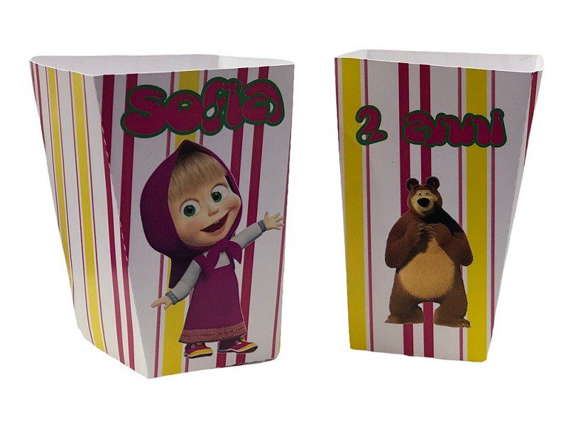 10 Scatole per Pop Corn Caramelle Masha e Orso Personalizzabili