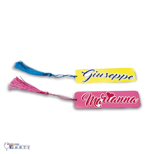 10 SEGNALIBRI IN LEGNO COLORATO CON NOME PERSONALIZZATO GADGET DI FINE FESTA