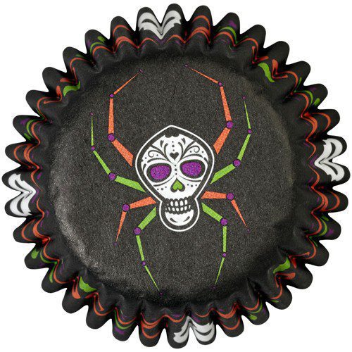 100 MINI PIROTTINI PER CUPCAKES HALLOWEEN NERI CON RAGNO WILTON
