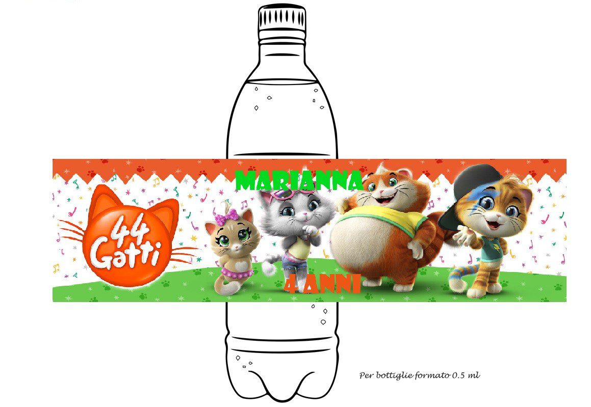 🎉 Etichette adesive personalizzate tema 44 Gatti per bottigliette d’acqua – Pronte all’uso! 🎉