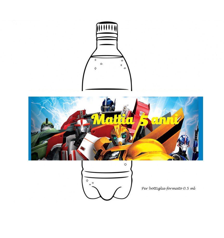 Acquista su Arcobaleno Party 12 Etichette adesive per acqua Transformers Personalizzabili