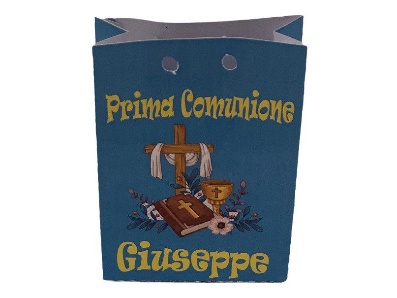 12 Scatole Comunione Modello Shopping Blu Personalizzabili per confetti caramelle