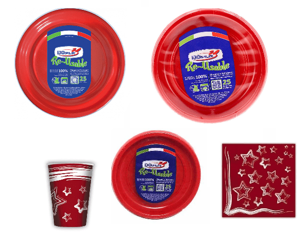 I piatti sono colorati lavabili e riutilizzabili, qualità Made in Italy testati per 20 lavaggi in lavastoviglie. Rispettano l’ambiente in quanto lavabili e riutilizzabili molte volte, consentendo un risparmio economico. Ottimi per feste “Usa e Riusa” venduti in confezione da 25 pezzi idonei a contenere ogni tipo di pietanze, anche calde fino a 90 gradi per 15 minuti. Realizzati in plastica PS 06 riutilizzabili e lavabili 100% riciclabili.