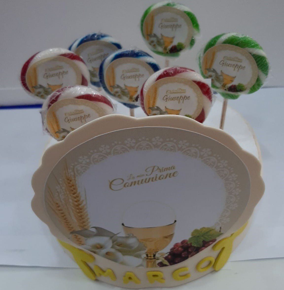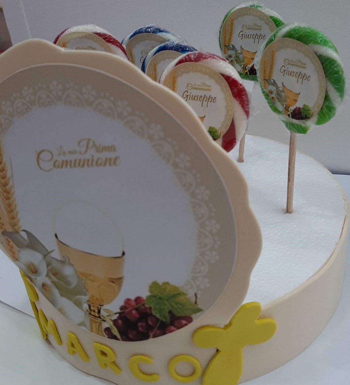 Acquista su Arcobaleno Party 20 LECCA LECCA LA MIA PRIMA COMUNINE CON ALZATA E BOLLINO PERSONALIZZATO