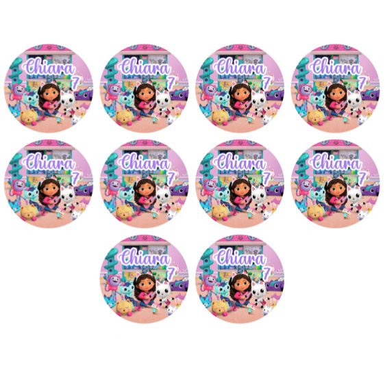 40 Bollini Adesivi tema Gabby Dollhouse Personalizzabili con il nome e l’etaì del festeggiato/a 40 pz