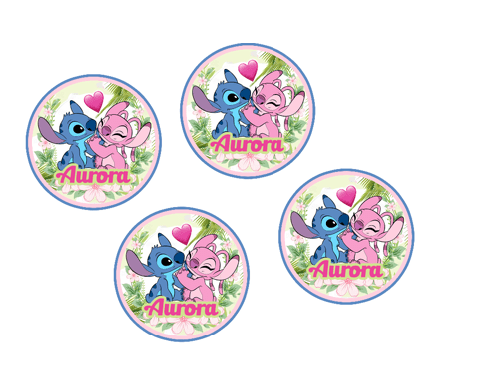 40 Bollini tema Adesivi Lilo & Stitch Personalizzabili con nome ed eta’ del festeggiato/a