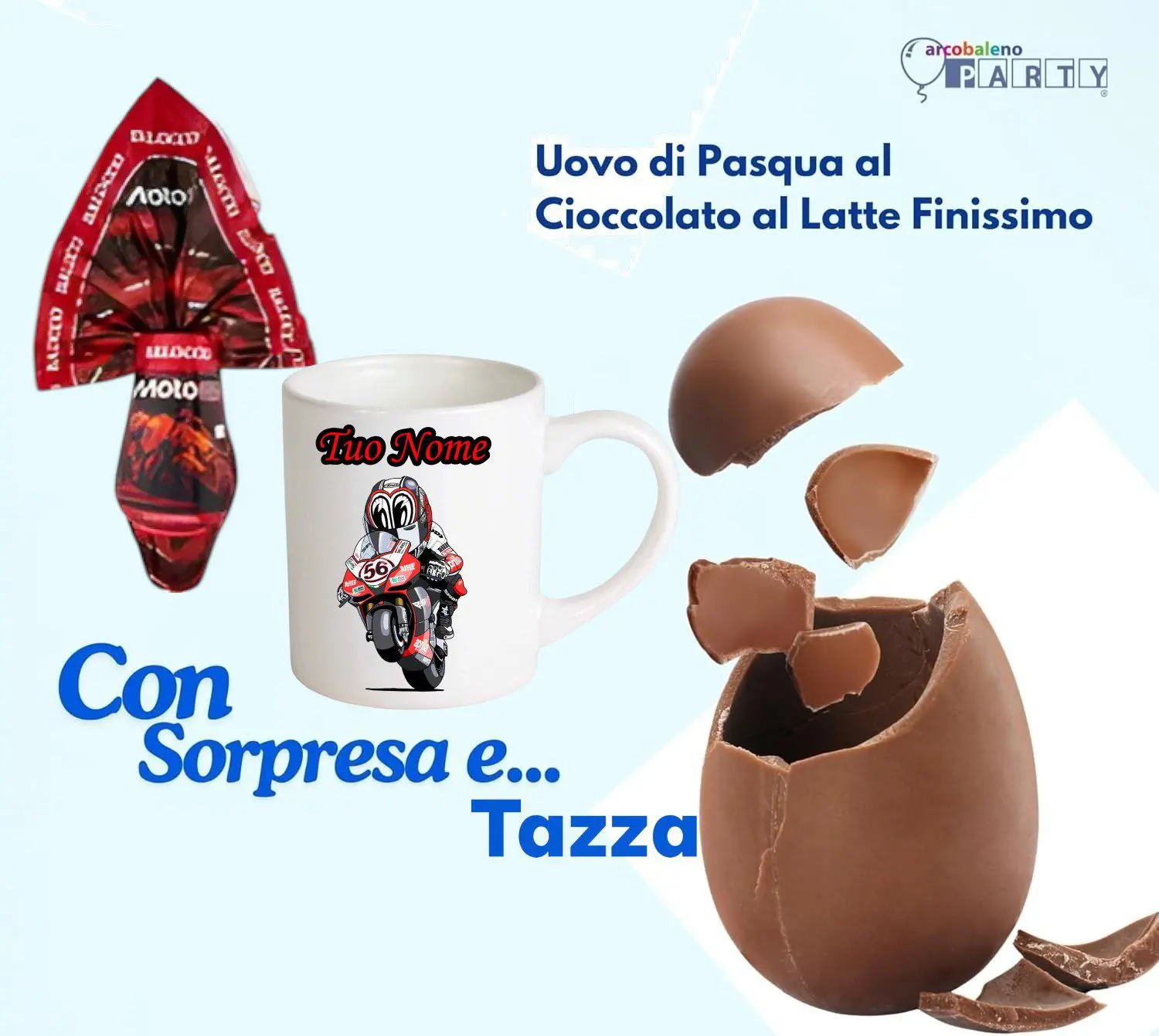 Uovo + tazza personalizzata – Un regalo doppio: il gusto del cioccolato e una tazza unica con il nome o il design che preferisci, perfetta per iniziare ogni giornata con dolcezza.(da personalizzare con nome)