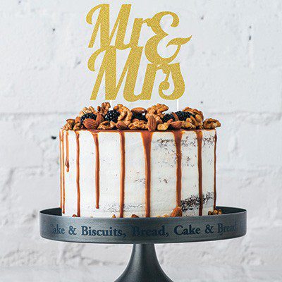 Cake Topper Decorazione Mr & Mrs oro glitterato