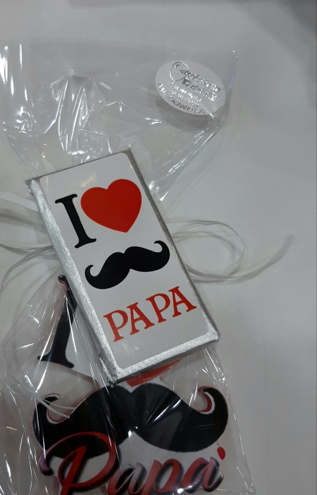 1 CALAMITA CON LA SCRITTA FESTA DEL PAPA’ CON UNA BARETTA DI OTTIMO CIOCCOLATO A LATTE