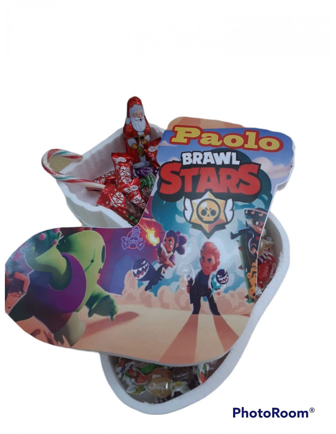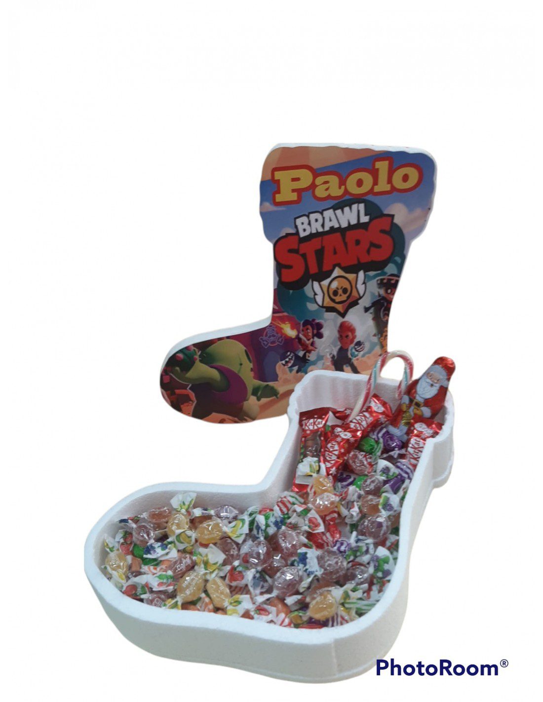 BOX A FORMA DI CALZA IN POLISTIROLO CON POSSIBILITA’ DI INSERIRE L’IMMAGINE CHE SI PREFERISCE E IL NOME