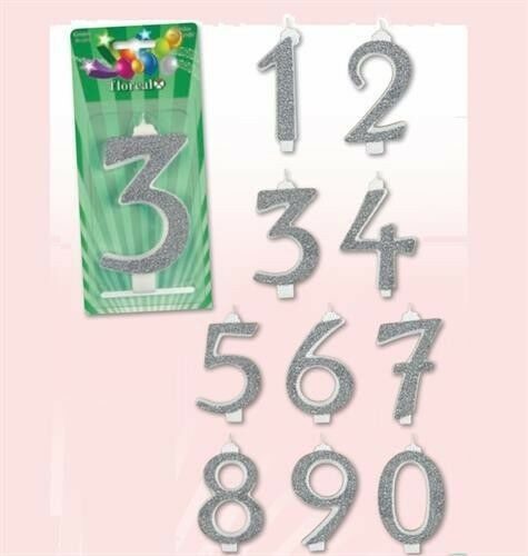 Candela Glitterata Argento disponibile dal numero 0 al 9