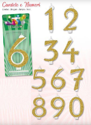 Candela Glitterata Oro disponibile dal numero 0 al 9