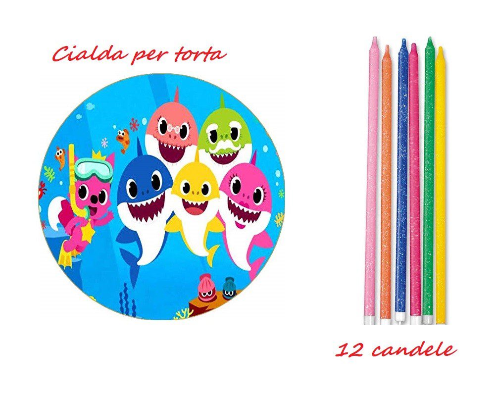 CIALDA SU OSTIA BABY SHARK CON 12 CANDELE MULTICOLOR