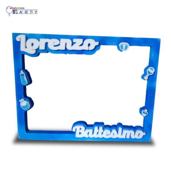 CORNICE PER FOTO IN POLISTIROLO CON NOME E APPICAZIONI IN 2D INTERAMENTE PERSONALIZZABILE BATTESIMO