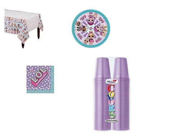 KIT 1 FESTA 8 OSPITI LOL SURPRISE COORDINATO TAVOLA (8 PIATTI, 100 BICCHIERI,16 TOVAGLIOLI,1 TOVAGLIA)