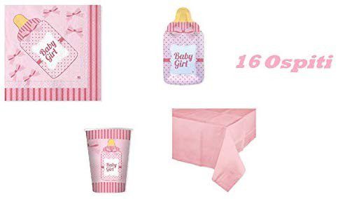 Kit 16 Ospiti BIBERON Rosa (16 Piatti,16 Bicchieri,20 TOVAGLIOLI,1 TOVAGLIA) Festa Decorazione Coordinato TAVOLA