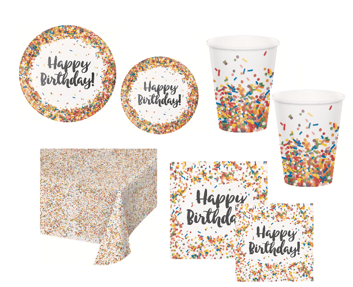 KIT 16 OSPITI SPRINKLES CODETTE COORDINATO TAVOLA (16 PIATTI,16 TOVAGLIOLI,16 BICCHIERI,1 TOVAGLIA)