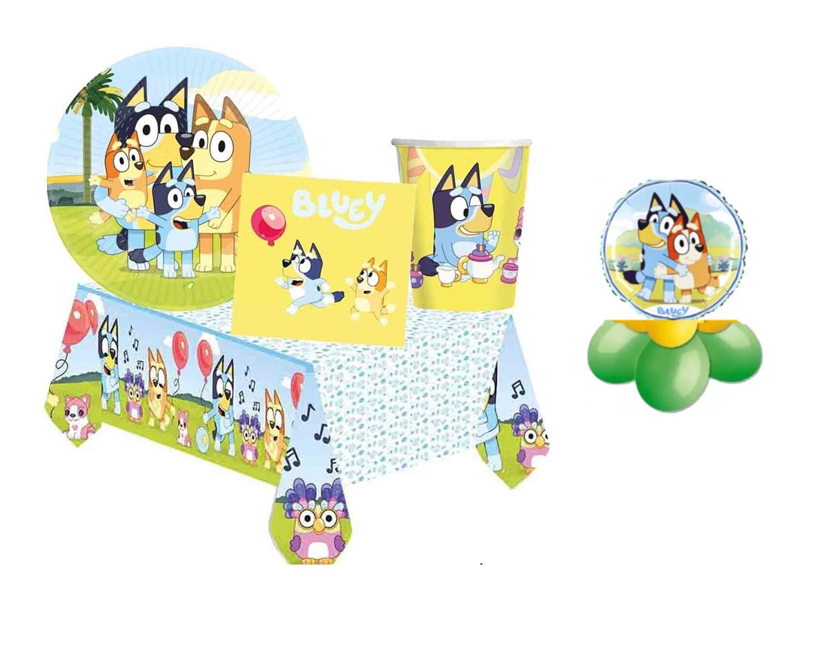 Kit 24 ospiti Coordinato tavola Bluey con tovaglia e pallone mylar