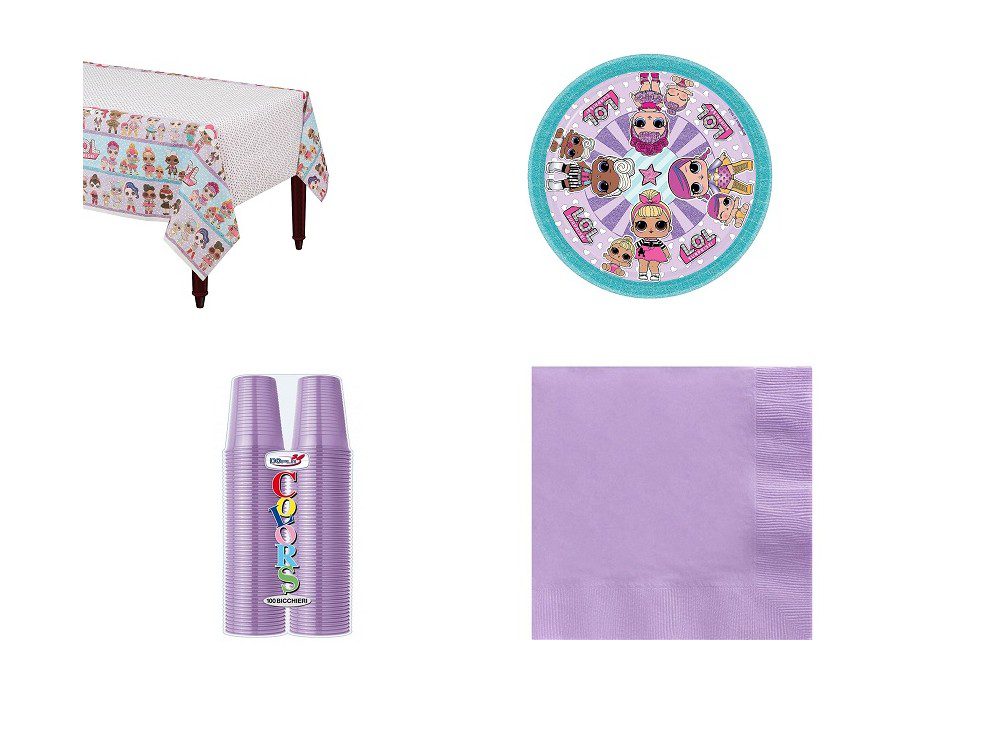 KIT 3 FESTA LOL SURPRISE COORDINATO TAVOLA(8 PIATTI- 100 BICCHIERI- 50 TOVAGLIOLI- 1 TOVAGLIA )