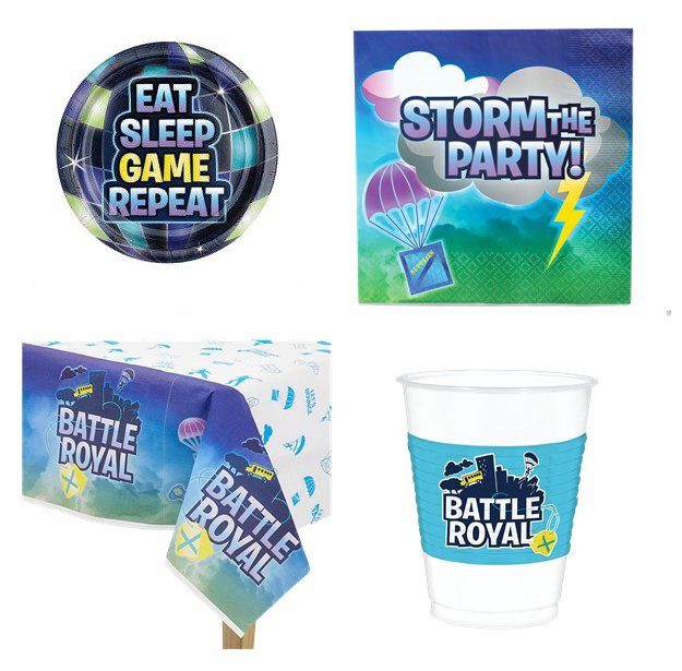 KIT 32 OSPITI FORTNITE BATTLE ROYAL COORDINATO TAVOLA (32 PATTI,32 BICCHIERI,32 TOVAGLIOLI,1 TOVAGLIA)