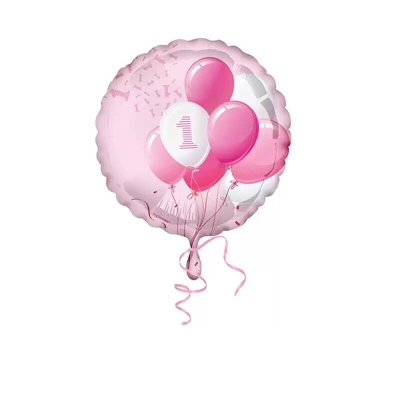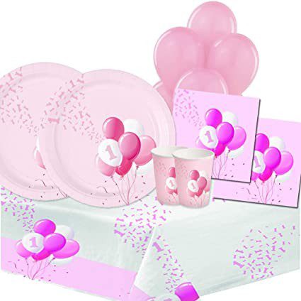 KIT 40 OSPITI COORDINATO TAVOLA PRIMO COMPLEANNO PALLONCINO ROSA CON TOVAGLIA E PALLONE IN MYLAR