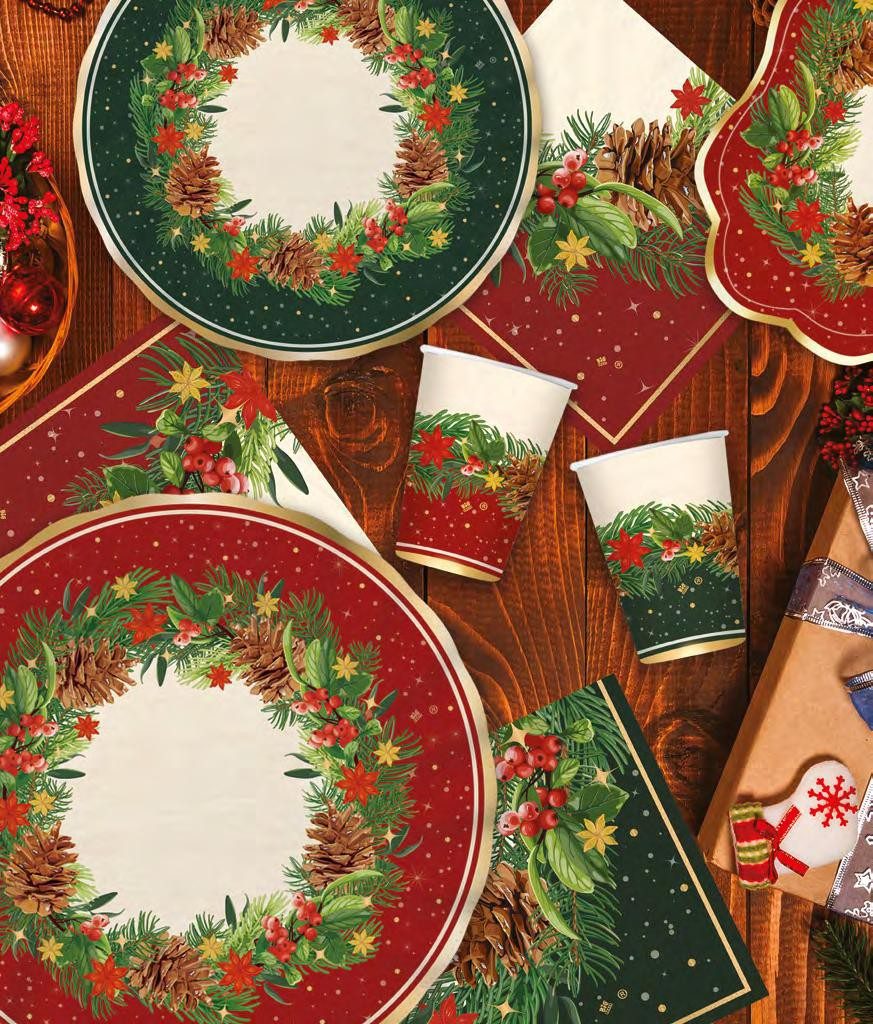 KIT 6 ospiti Natale mix Christmas Twinkle (6piatti piani -6 piatti dolce-6 bicchieri- 16 tovaglioli- 6 sottopiatti)