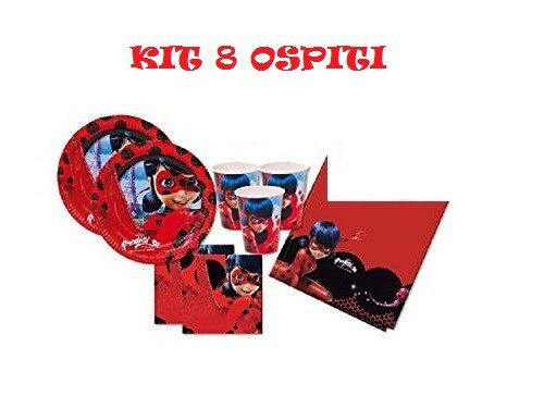 Kit 8 Ospiti LadyBug Miraculous Coordinato TAVOLA Compleanno ADDOBBI(8 Piatti,8 Bicchieri,20 TOVAGLIOLI,1 TOVAGLIA)