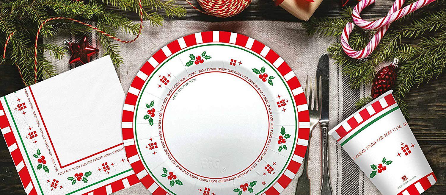 Kit 8 Ospiti Natale Limited Edition Coordinato TAVOLA Natale(8 Piatti CM 25,8 Piatti CM 20, 8 Bicchieri,20 TOVAGLIOLI)