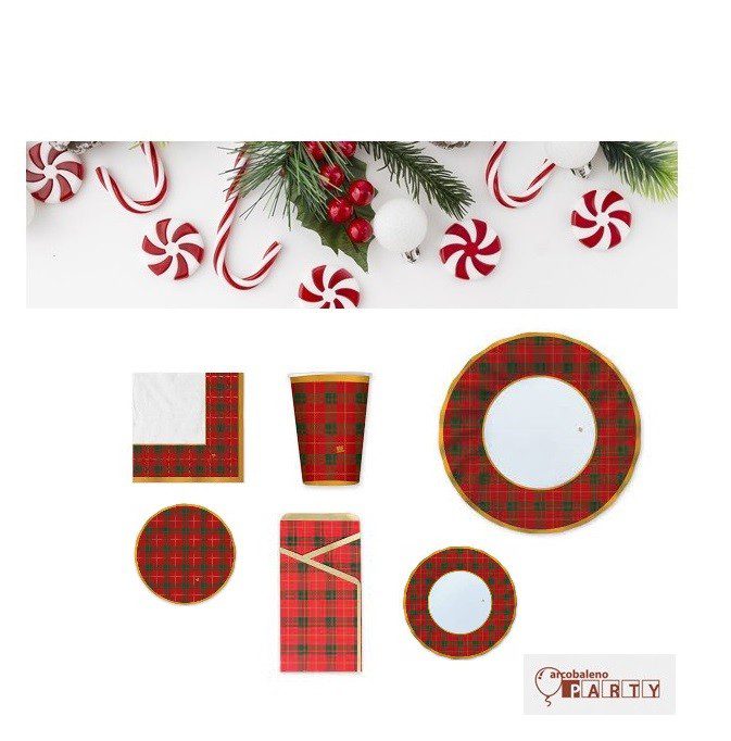 KIT 8 ospiti Tartan (8 piatti piani-8 piatti dolce-8 bicchieri-12 sottopiatti 20- tovaglioli- 8 portaposate)