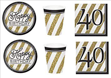 KIT COORDINATO TAVOLA 24 OSPITI COMPLEANNO 40 ANNI CON PALLONI E FESTONE