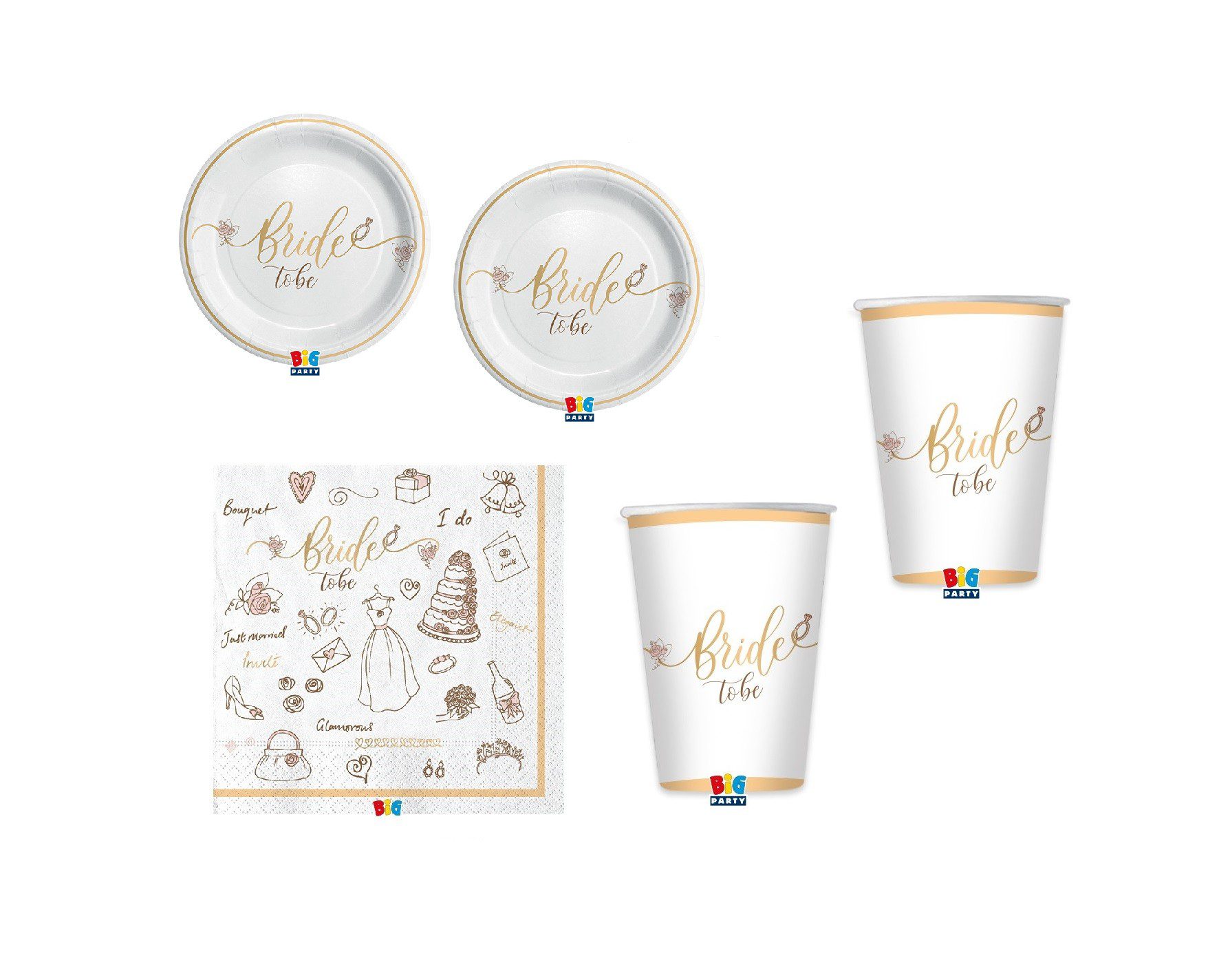 KIT FESTA 16 OSPITI BRIDE TO BE COORDINATO TAVOLA(16 PIATTI,16 BICCHIERI, 20 TOVAGLIOLI)