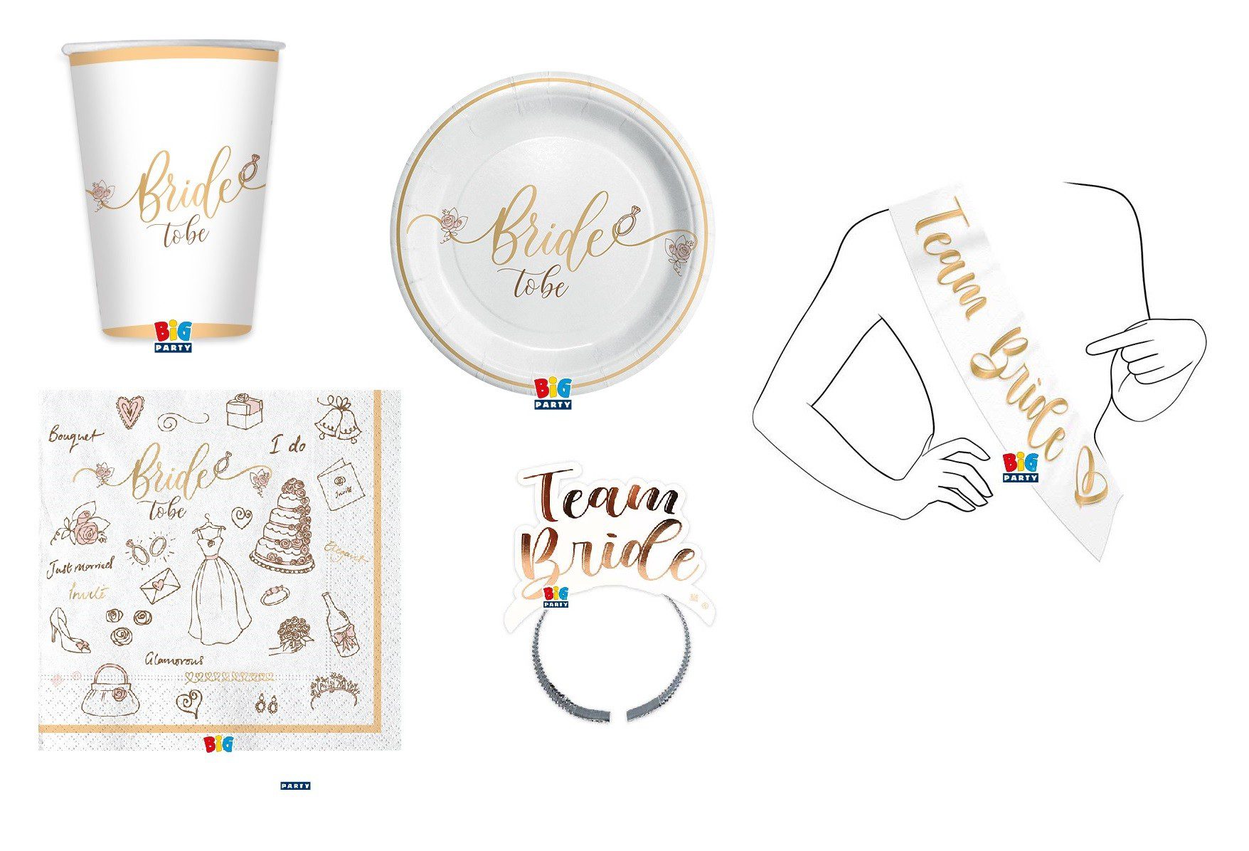 KIT FESTA 8 OSPITI BRIDE TO BE COORDINATO TAVOLA CON FASCIA E FRONTINI