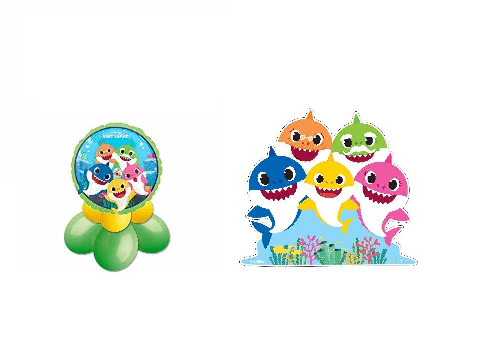 KIT FESTA BABY SHARK CON CENTROTAVOLA E SAGOMA IN POLISTIROLO