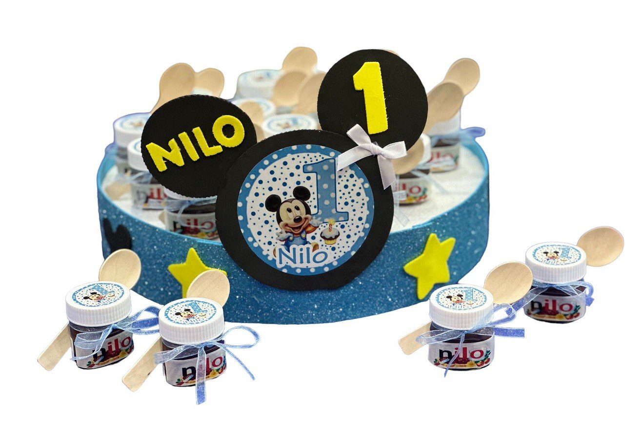 • BARATTOLINI DI NUTELLA GR 25 CON 1 BOLLINO FRONTALE CON IL NOME DEL FESTEGGIATO/A