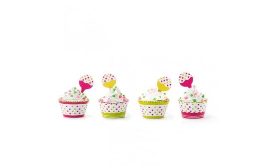 Kit composto di 12 wrappers e 12 picks. perfetti per personalizzare le feste a tema con delicate fantasie e fantastici colori. un dolcetto per ogni occasione