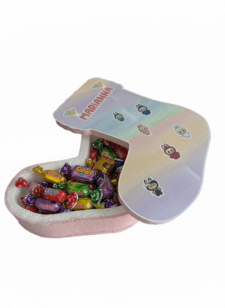 Box a forma di calza con grafica Labubu e nome personalizzato.