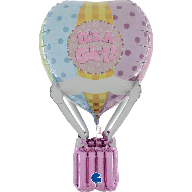 Pallone Mylar cm 91 a forma di mongolfiera rosa olografico
