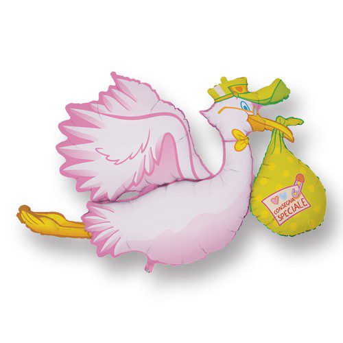 Pallone Mylar Cicogna Rosa cm 100 gonfiabile ad elio
