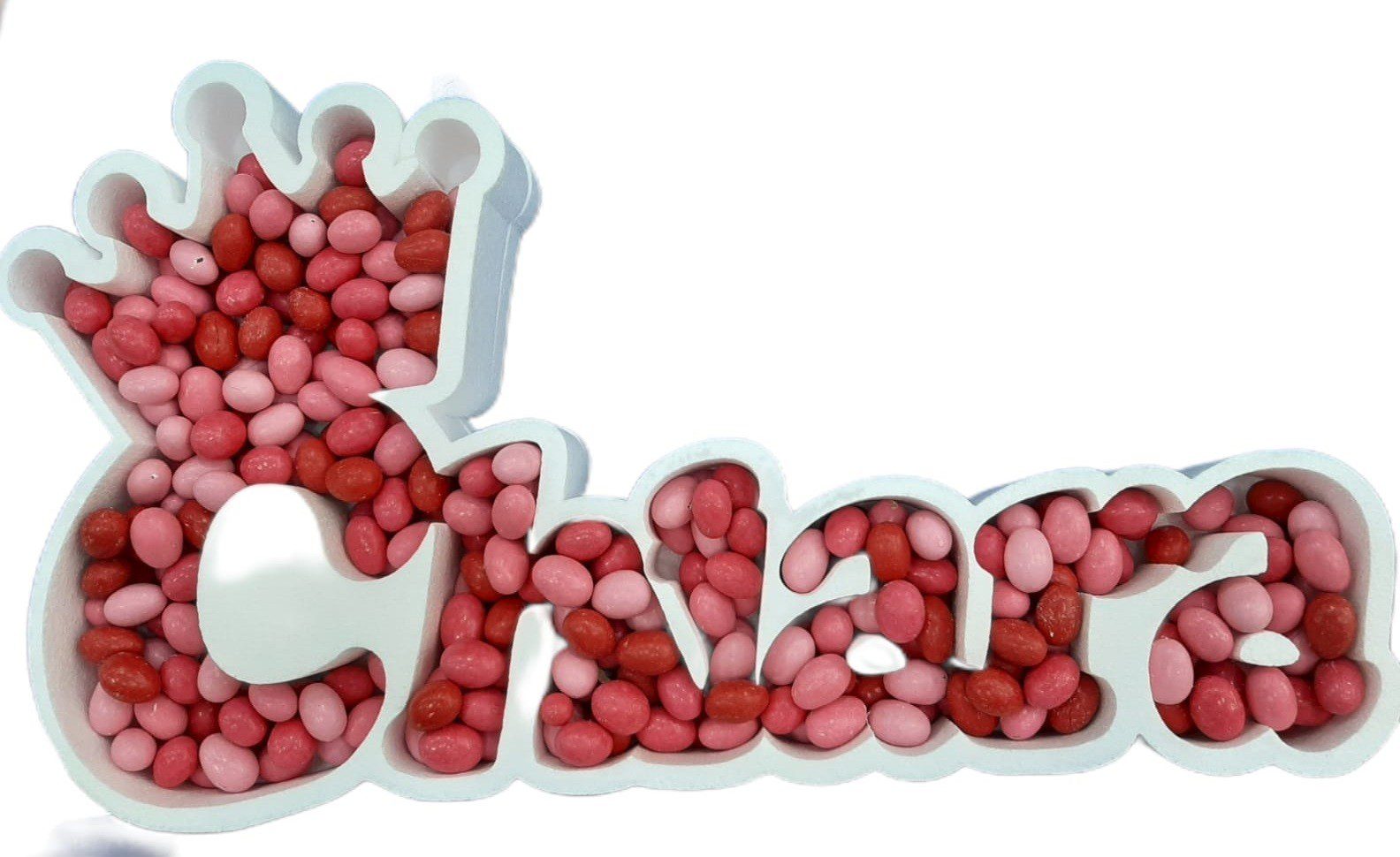 PORTACONFETTI /CARAMELLE IN POLISTIROLO NOME CON CORONA