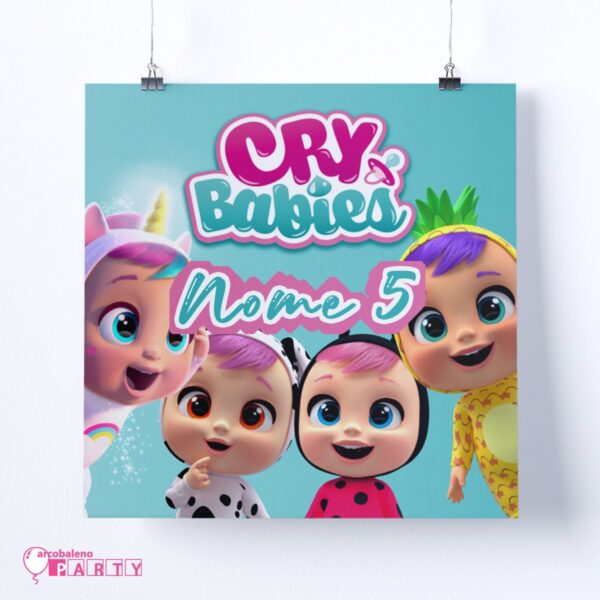 Trasforma la festa del tuo piccolo o della tua piccola in un mondo incantato con il nostro poster personalizzato a tema Cry Babies, perfetto per creare un allestimento unico e super tenero!