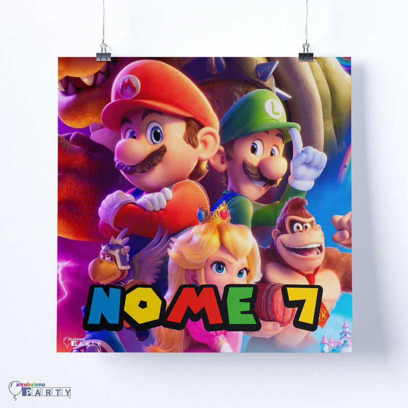 Preparati a un party da veri gamer con il nostro poster personalizzato a tema Mario Bros, completo di nome ed età del festeggiato/a! Colorato, divertente e pieno di energia: è l’allestimento perfetto per un compleanno indimenticabile!