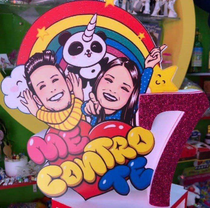 Sagoma In Polistirolo me contro te con numero in polistirolo glitterato fuxia personalizzato