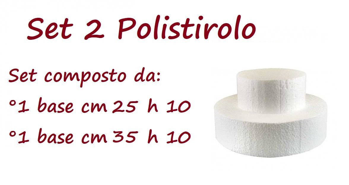 Set da 2 Basi di Polistirolo per Torte Tondo Altezza 10 cm(1 Polistirolo 25 cm h 10 – 1 Polistirolo 35 cm h10 )