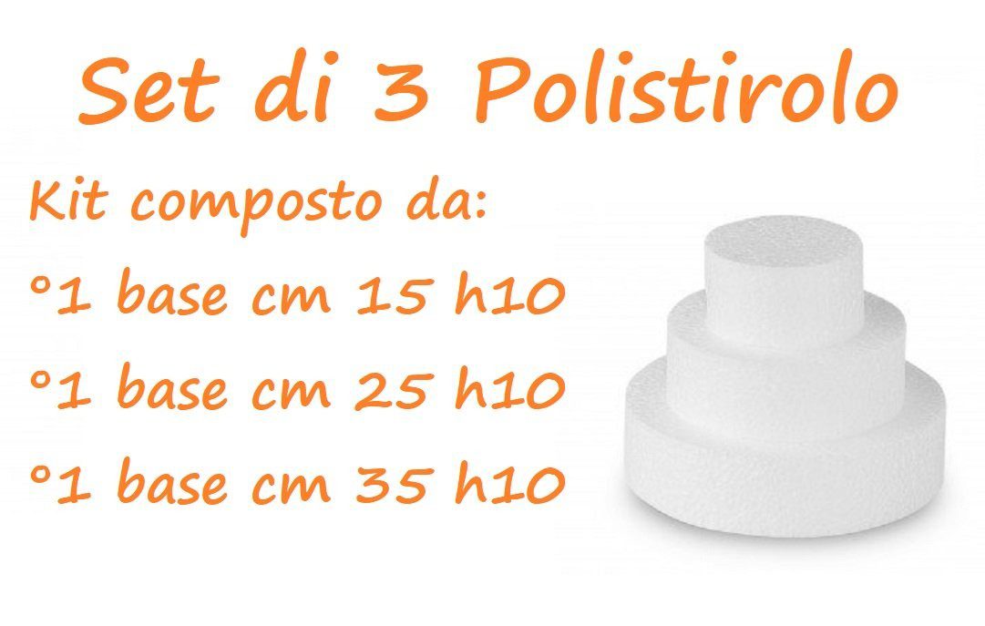 Set da 3 Basi di Polistirolo per Torte Tondo Altezza 10 cm(15 cm h10 – 25 cm h10 – 35 cm h10)