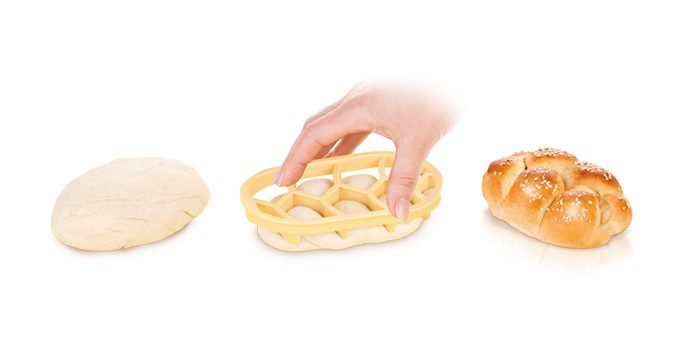 • Ideale per preparare a casa propria il tradizionale pane tedesco. Premere a fondo lo stampo sulle pagnottelle (circa 2 mm sopra il piano di lavoro) e cuocere in forno. Prodotto in plastica resistente di alta qualità. Lavabile in lavastoviglie