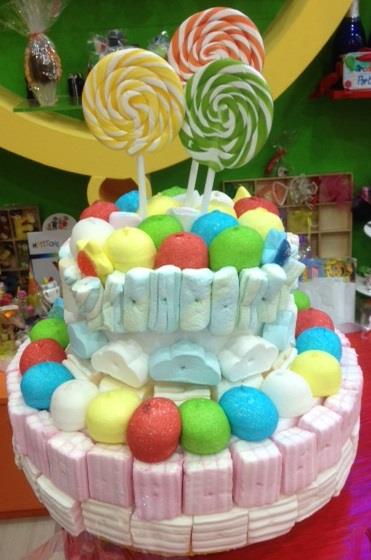 TORTA DI CARAMELLE CON GIRANDOLE COLORATE