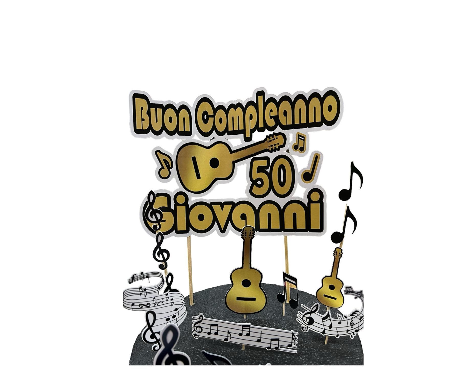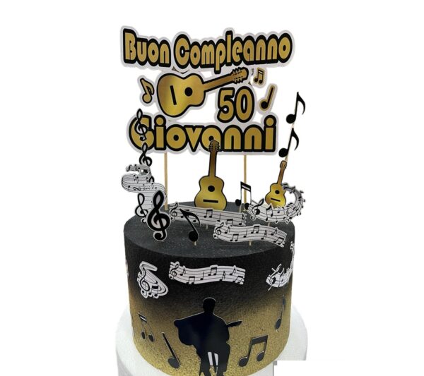 Torta scenografica in polistirolo colorato tema Musica con cake topper personalizzato in cartoncino